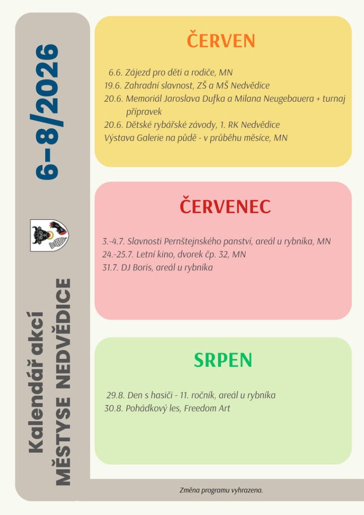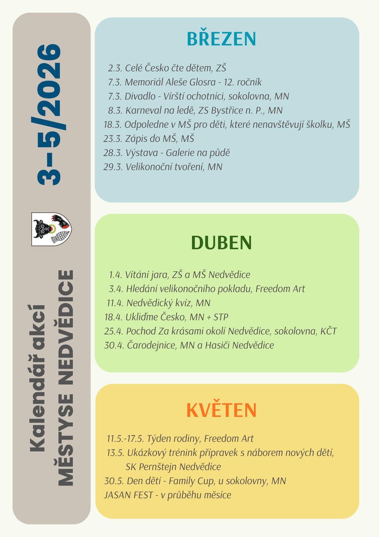 Kalendář akcí Městyse Nedvědice leden-červen 2024